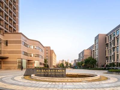 四中国际部在共享下沙校区教学资源的基础上,坐拥独立办学区域,现已建成5层教学楼1栋,6层宿舍2栋,12层国际交流中心(综合楼)1栋。独立食堂及艺体楼的建设即将竣工。国际交流中心内设日常教室、教师办公室、国际标准生物实验室、物理实验室、多功能报告厅、会议室、电脑机房等,布局合理,设施先进。我校拥有杭国际高中里较的硬件设施,是在杭同类学校中规模较大的。斥巨资专门新建独立办学区域,突破“国际班”小格局,为学校今后的发展提供了更为充分的硬件。