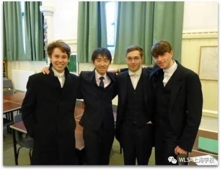 注:上图为2015届学生陈允灏于2013年在Eton College (伊顿公学)交换时与同学合影