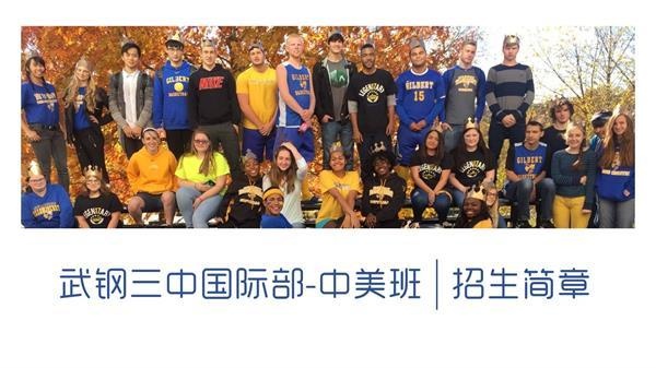 武钢三中国际部中美班 学籍 注册美国百年高中学籍 班型 小班授课,教师关注度高,学生学习体验好 师资 美国高中正规在籍教师,有国外教师资格证 教材 美国高中学术课程原版英文教材内容 课程 中美融合课程(70%美国高中学术课程+30%三中核心课程) 氛围 武钢三中淳朴的学风,浓厚的学术氛围 制度 以教育成果为导向,注重社会声誉 规划 被全美前100的学校录取,目标是全美前50的大学2019武钢三中国际部中美班招生政策要点: 初中毕业生,学生在通过中美班自主招生考试(英语数学笔试+面试)后,中考达到普高线即可录取,少数特招名额有限,针对英语、体育、艺术等专长学生; 经由学校国际部决定录取结果,录取学生即注册美国康涅狄格州百年吉尔伯特高中正式学籍,身份变更为美国高中学生; 学费每年人民币8万(含中美双方);中美双方共同实施教育教学管理,平均每天美国高中外教课程6-7节; 学生入学后学习美国高中课程,在武钢三中学习三年,毕业时不参加国内高考; 学生毕业时可申请包括美国在内的全球大学,保底申请到全美国排名前100的正规大学。 方式: