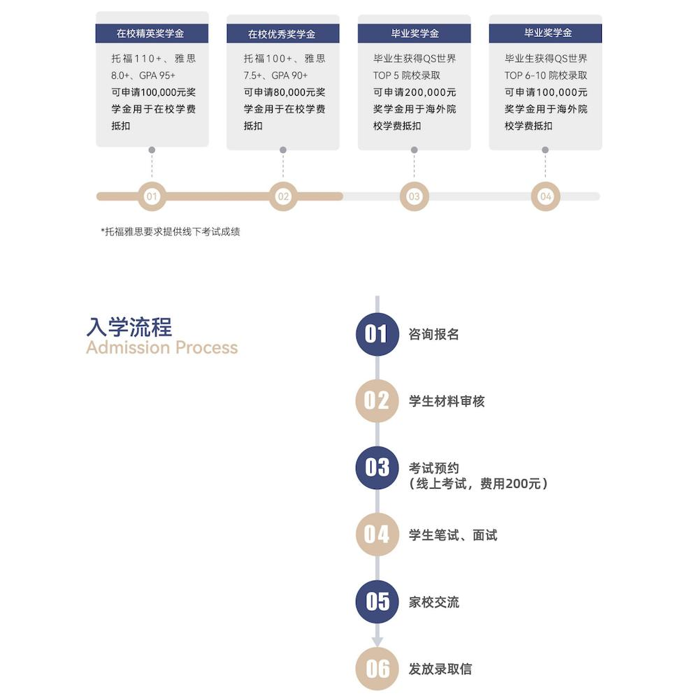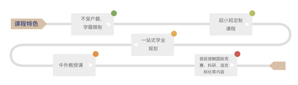 为选择国际高中课程或准备就读海外高中的学生提供语言、学科、学术写作能力训练等专业化衔接学习服务,从双语循序渐进过渡到纯外语教学,让学生更好地适应国际课程。衔接班结束后,学校为学生提供多元课程体系选择,使学生与梦校有效对接。