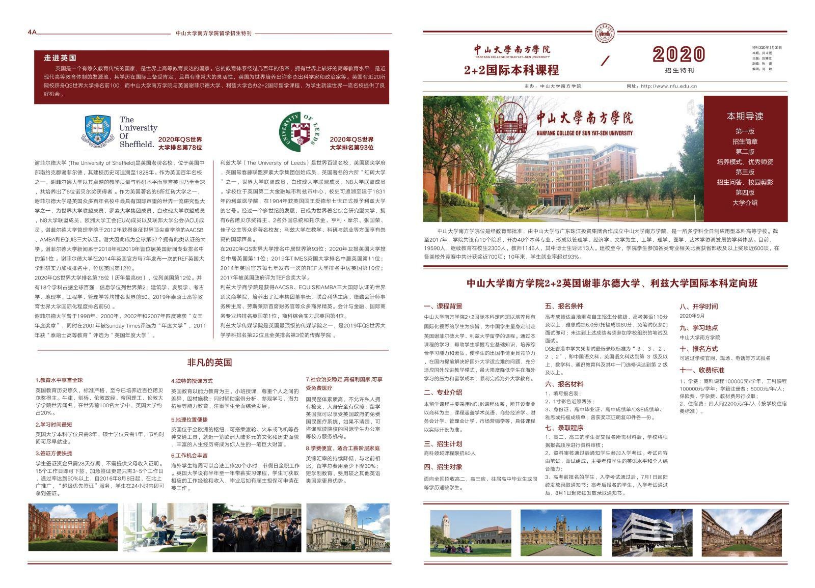中山大学南方学院2+2英国谢菲尔德大学、利兹大学国际本科预备课程招生简章