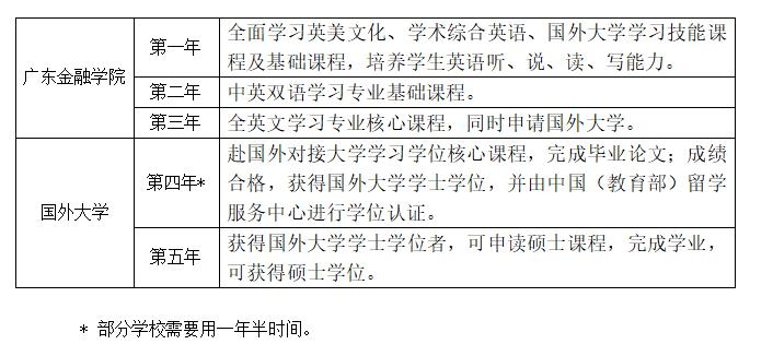 项目学生在广东金融学院校本部全日制学习三学年,成绩合格,由英国苏格兰学历管理委员会授予其AD。之后可直接进入英国、美国、加拿大、澳大利亚、新西兰、瑞典和韩国等国家的多所大学深造,较短1年即可获得国内外认可的本科学士学位并可直读1年制硕士课程。此课程的国外对接大学均可在教育部涉外监管信息网查询,教育部留学服务中心对留学归国学生所获学士、硕士学位根据相关条例给予认证。