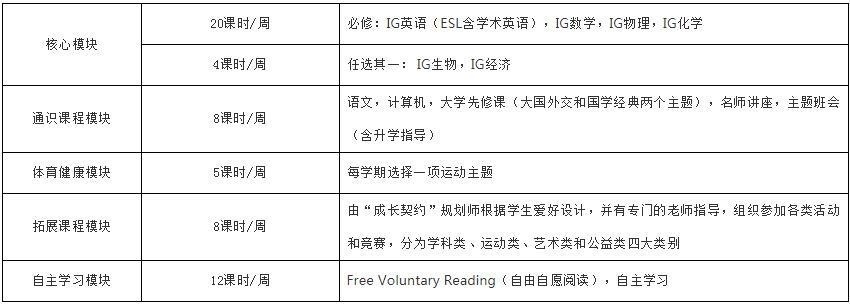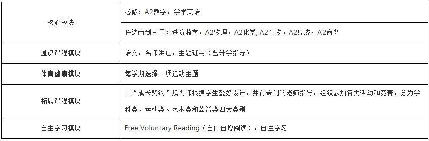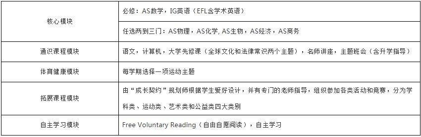 北京外国语大学国际高中开设以剑桥课程体系为核心、融合素养提升课程的五大模块,包括通识课程模块;核心模块;FVR阅读课程;体育健康模块;拓展课程模块,全面培养学生的英语素养、学科素养和人文素养。