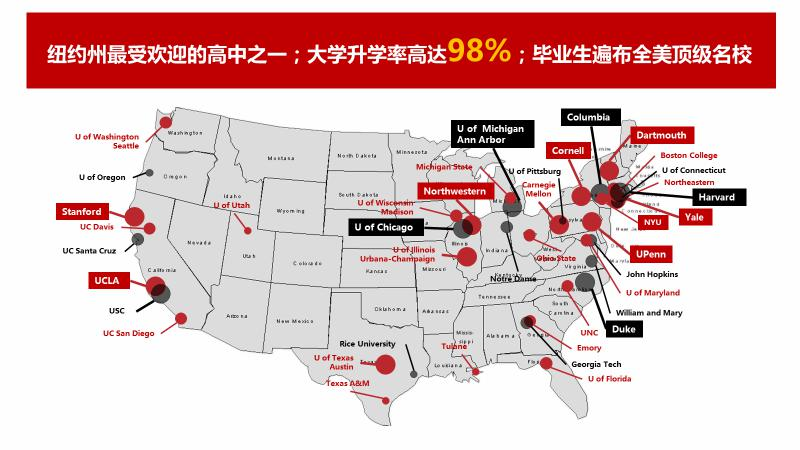 马丁路德高中:位于美国大城市纽约市,被美国教育委员会、美国大学入学考试委员会以及美国大学奖学金服务机构所认可,并加入美国政府STEM计划;往届毕业生进入哈佛大学、哥伦比亚大学等学府。