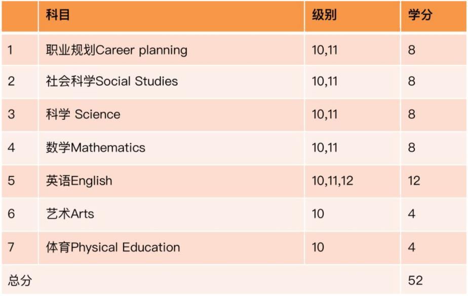 · 十年级开始计算学分。50分为合格,可以拿到4个学分。最少完成20科课程的学习修满80学分顺利毕业。