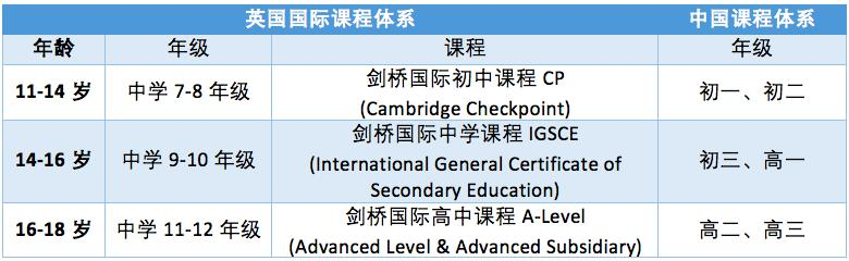 在美伦国际,我们开设了包括IGCSE和A-LEVEL的英国高中课程。与中国的中学学制稍有不同,英国的中学分成三部分:初中两年(Check-point,简称CP),高中两年(IGCSE)和大学预科课程(A-Level)。我们可以先来看看中英两个不同的课程体系的对照。