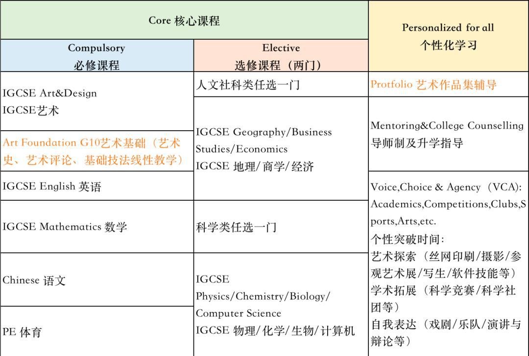 Grade10(三年制):紧凑而快节奏的学习计划,加入作品集的课程
