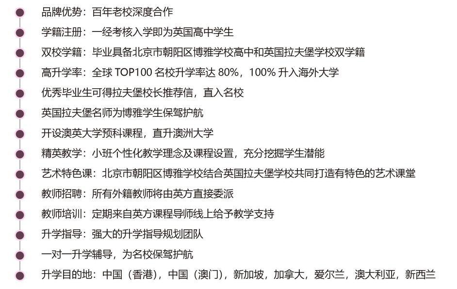 北京市朝阳区博雅学校采用最适合中国高中生就读的 IGCSE 和 ALEVEL 国际课程,由英国拉夫堡学校专家团队打造的国际化课堂,并融合国风化特色的课程元素,实现中西方教育融合,关注每一位孩子的成长、学习与发展