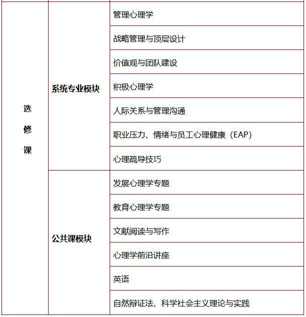 >培养适应社会需求,系统掌握动机管理、认知管理、情绪管理、行为管理和组织管理等扎实的现代管理理论基础和现代管理专业技术的高层次专业人才。