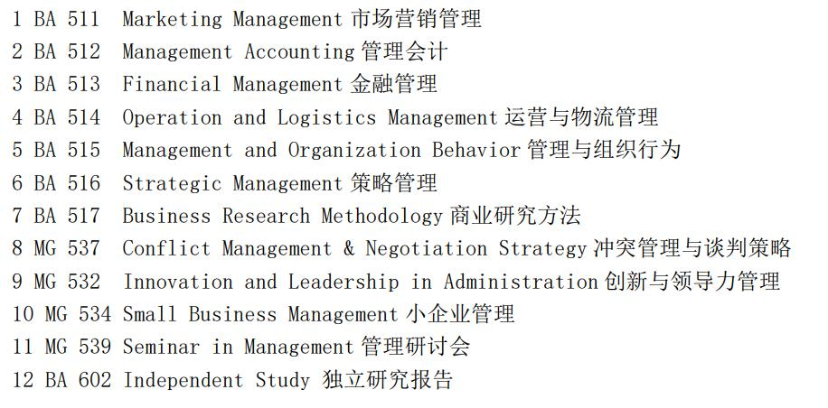 03泰国皇家园大学工商管理(MBA)国际硕士招生简章—课程设置