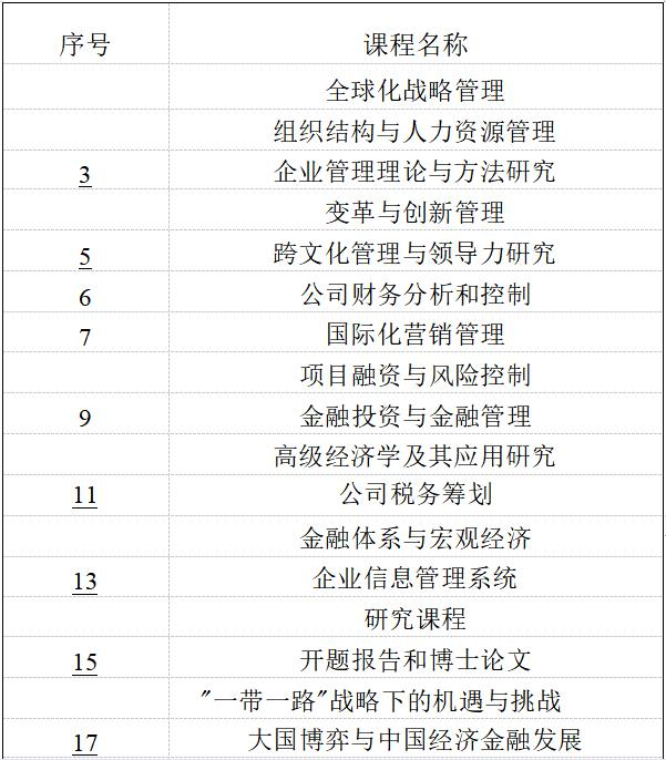 *必修课8门,选修课4门,安排3次论文工作坊,具体课程设置以中心实际排课计划为准。学分修满,论文完成并合格,通过答辩,将获颁DBA博士学位证书。