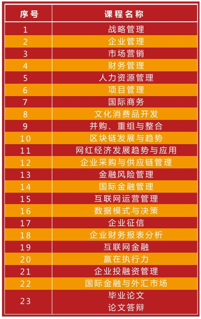 *必修课7门,选修课8门,其中5门为线上授课,具体课程设置以中心实际排课计划为准。学分修满,论文完成并合格,通过答辩,将获颁MBA硕士学位证书。