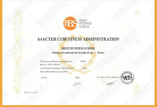 学生被录取后将在法国布雷斯特商学院建立学生档案,学生的学习课程及成绩将存入档案,修满学分并通过论文答辩后将颁发全球通用的工商管理硕士(MBA)学位证书。
