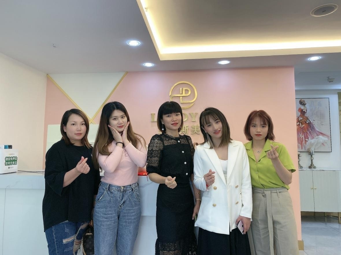 学员福运(左2)本身是一名普通的家庭妇女,辅助自己的先生打理家里的美发店。经过我们“女性精准就业班”3天的课程,对美业产生了浓重的兴趣。跟先生商量过后,在兰蒂斯学习的美甲、美睫、半永久三项技术,引进到家里的美发店,开启了全新的美业综合性门店,日子也过的越来越好。