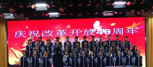 盐边县民族中学高一年级纪念改革开放40周年合唱比赛为激发学生的爱国情怀,增强感恩意识,丰富校园文化,促进班级的凝聚力和团队协作精神的培养, 2018年11月11日盐边县中学校高一年级响应学校号召,在阶梯教室举行了《纪念改革开放40周年》合唱比赛,资助中心主任姚赞怡老师、高中教导主任明祖文老师、校团委书记王富超老师、赵欢欢老师、汪金花老师、董文方老师应邀担任本次比赛的评委,学校校长黄尔林、副校长雷为湘、副校长熊云飞也莅临现场观看了比赛。