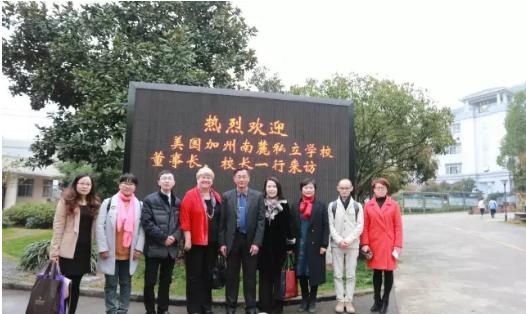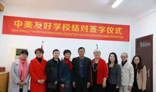 3月23日,美国加州南麓私立学校董事长孙文锦女士、校长Nancy Jepsen女士一行莅临杭州东方中学访问,与杭州东方中学签署了友好学校协议,结对为中美友好学校。