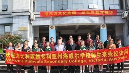 4月12日,由澳大利亚墨尔本友好学校Highvale Secondary College海威尔学校副校长Greg先生带队的访问团再一次来到东方中学,开始海威尔2013中国行的第二站--杭州之行。Highvale Secondary Colleg的师生来访和杭州民办东方中学每年组织学生赴澳大利亚进行语言短期培训是两校交流的传统项目。