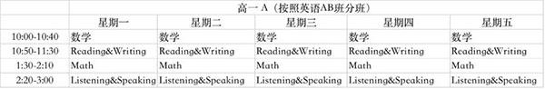 针对这种客观情况,在安排课程上我们并没有照搬课表,而是选择了国际学生较重要的两门课,数学及英语,以巩固复习为主,每天的课程量也有所减少,增加学生练习的环节,其中又将数学分为中方数学和英数两门,英语分为读写和听说。
