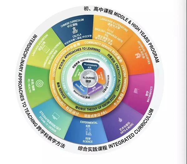 以国家义务阶段课程为基础,融合特色国际中学课程,课程体系包含学术教育和幸福教育,户外教育项目和音乐、体育等的课外活动。