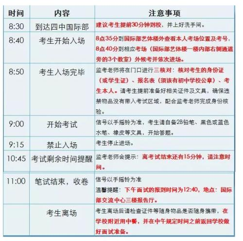 1、建议在开考前30分钟到达考场,考试开始后15分钟考生不得进场。请所有考生提前到达国际部艺体楼外查看考位。建议在考前上好洗手间,备好相关物品。