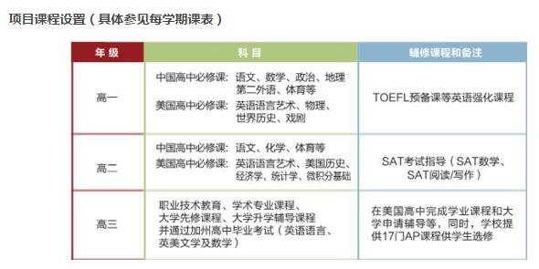 中美2+1国际高中课程班是国内个,也是一个与美国公立教育局、公立高中合作的项目。它是由美国BELA教育集团、美国加州洛杉矶学区教委携手为中国学生量身打造、特别提供的“美国公立高中直录计划”和“美国大学计划”。美方学区教学委员会和中方省级教育局全程跟踪和监控项目的运作,解除家长和学生的后顾之忧。