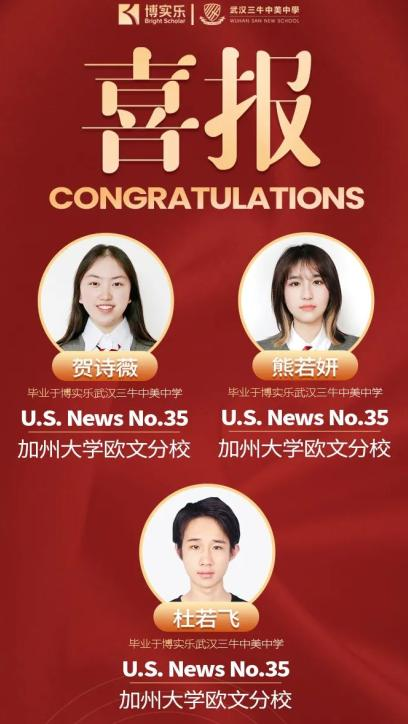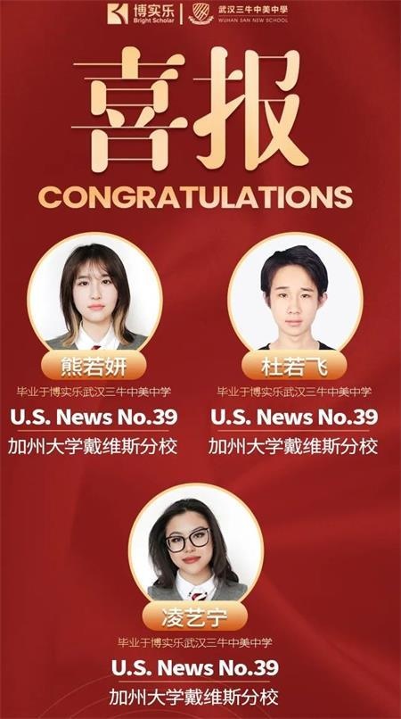 截止至30日,三牛应届毕业生陆续收到多所排名全美前60的高校,包括——