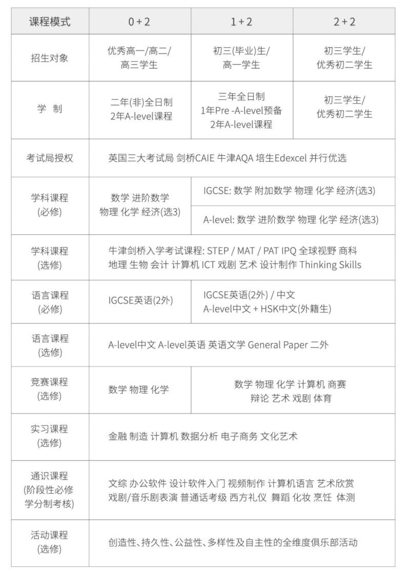开设课程:A-level课程、IGCSE课程
