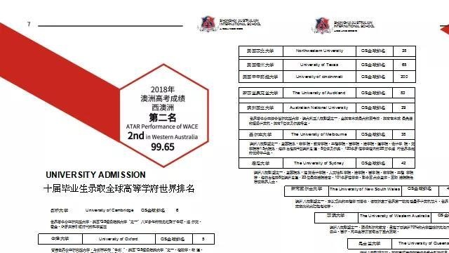 上海澳大利亚国际学校办学十一年,十届毕业生,规划,更是高达90%的学生被英国前五、澳洲八大等世界排名前一百的学校录取。2018年澳洲高考成绩在西澳洲所有高中排名中名列第2,名为当地一所百年私立。