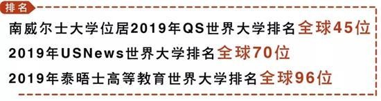 2019 QS世界大学学科排名新南威尔士大学世界50强学科: