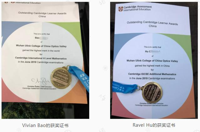 其中,Vivian Bao同学在A-level数学中凭借满分250分的成绩问鼎该学科的全球较高分,Ravel Hu同学获2019年IGCSE附加数学(Additional Mathematics)全国较高分。