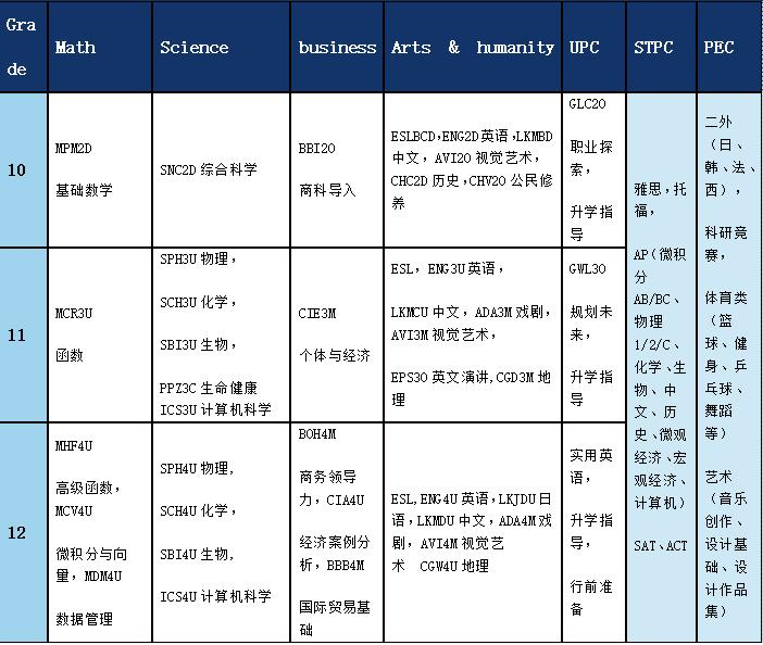 OSSD课程是全世界先进的中学课程体系之一。安省教育部对OSSD课程体系从课程设置、教学内容、学校教师资格、到评分标准有严格的控制和监管,课程全面致力于提高学生在英语教学环境下的学习能力,思考能力和创造性能力。学分系统灵活,选课个性化。