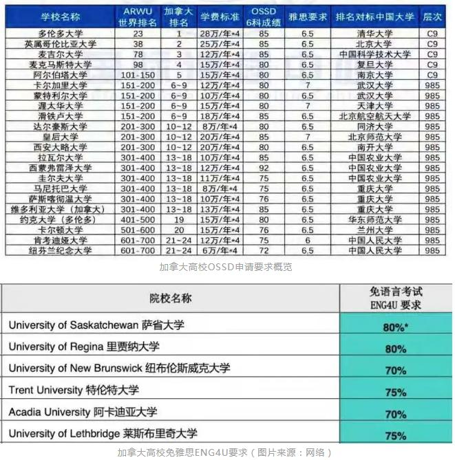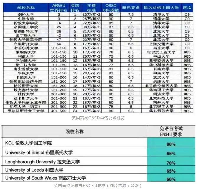 在申请英联邦高校时,学生不需要提交高考成绩,免读预科,可以直接申请进入本科大一课程,对学生的学术成绩要求为12年级的6门课程的平均分。部分英联邦学校可以使用OSSD12年级的英语课程代替雅思的成绩要求,即可以理解为OSSD课程的学生可以免雅思申请部分英联邦大学本科课程升读。
