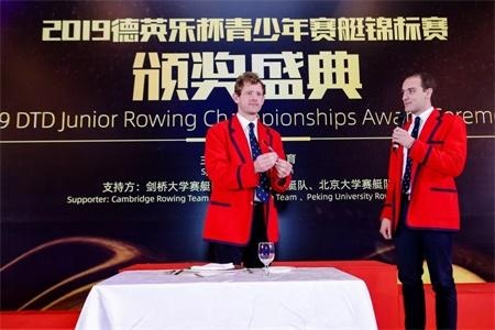 比赛结束后,参赛选手们着正装出席了颁奖典礼。首先,上海德英乐教育总经理许青川女士和世界赛艇联合会高级顾问、前亚洲赛艇联合会秘书长Ken Lee先生为选手们白天比赛的精彩表现点赞喝彩。