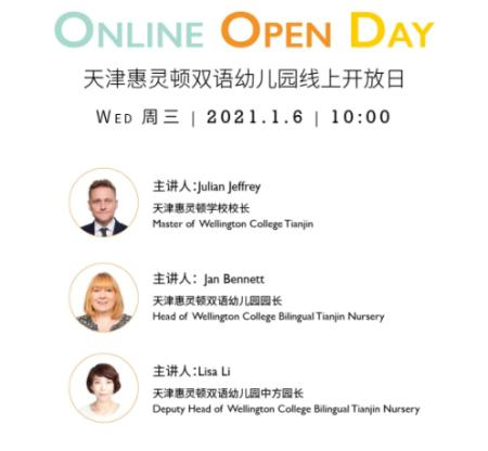 我们诚邀您于1月6日,周三,上午10:00与我们相约直播间,跟随园长Lisa的脚步,一起探索天津惠灵顿双语幼儿园的独特魅力,您还将聆听园长为您解读这里的教学理念、学习方法,在开放日中认识充满激情的教师团队,感受惠灵顿双语幼儿园孩子的一天。
