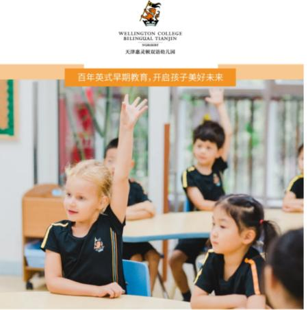 2011年,天津惠灵顿学校作为英国惠灵顿公学的海外合作学校,招收2-18岁的学生。2017年9月,天津惠灵顿双语幼儿园正式加入惠灵顿公学大家庭,招收2-6岁的中外籍学生,让具有惠灵顿特色的中英双语教育惠及更多的中国家庭,不出国门就能享受高品质的幼儿教育。天津惠灵顿双语幼儿园的目标是培养多面发展、锐意创新、适应多元文化、能在未来社会立足的双语人才。