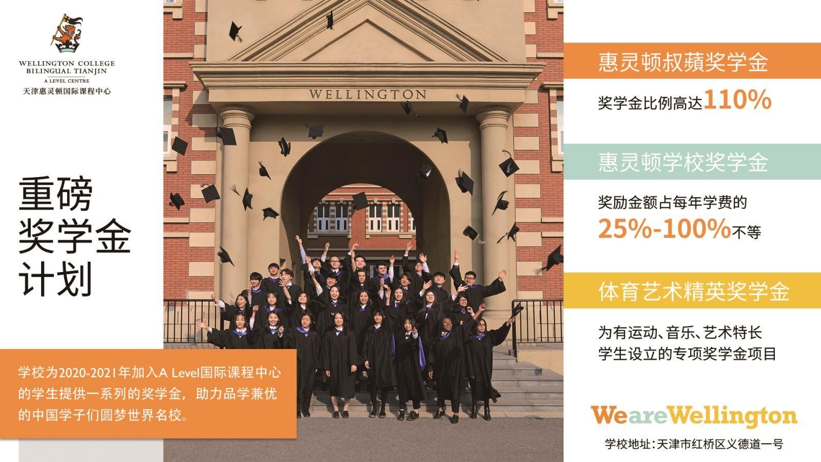 天津惠灵顿学校是拥有160年历史的英国惠灵顿公学所海外合作学校,成立于2011年。2014年,天津惠灵顿国际课程中心成立,为有志于报考海外大学的中国学生提供了一个三年的全日制纯正的英国高中课程;旨在结合中西方文化和教育之精髓,培养全面发展的、秉承惠灵顿价值观、具有中国灵魂、世界胸怀的国际化人才,以使他们能适应日新月异的全球大环境并茁壮成长。2017年,天津惠灵顿双语幼儿园成立,让具有惠灵顿特色的中英双语教育惠及更多的中国家庭,不出国门就能享受高品质的幼儿教育。