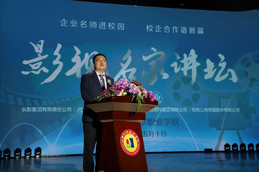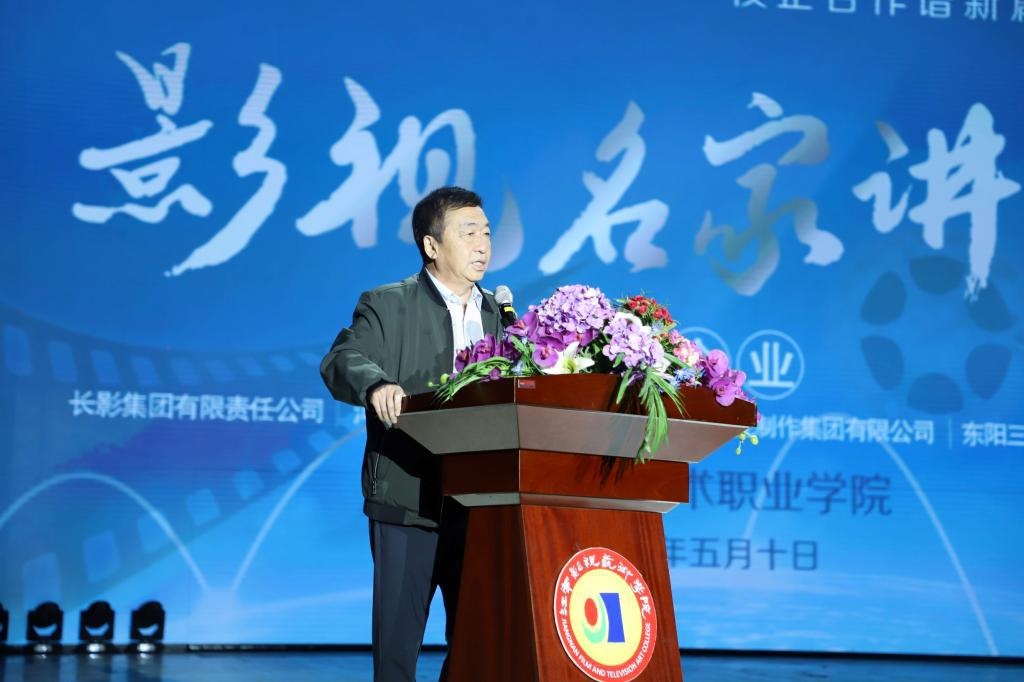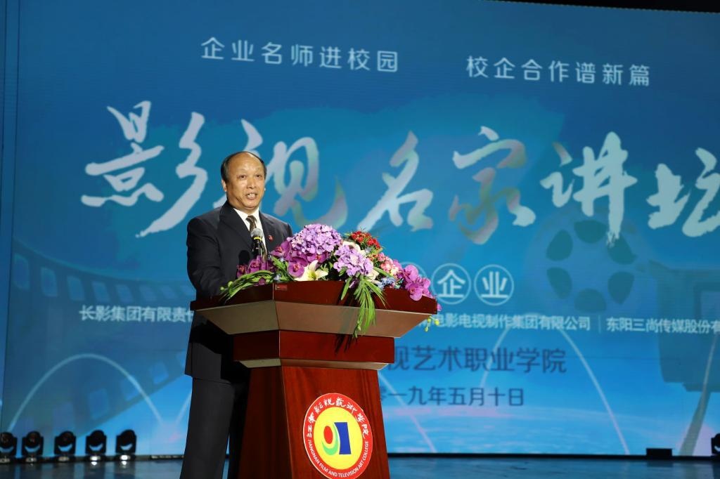 继江南影视艺术职业学院与长影集团、河南影视制作集团、东阳三尚传媒股份公司等全国影视巨头集团陆续签署战略合作协议后,于5月10日举办以“名企进校园,校企合作谱新篇”为主题的影视名家讲坛。出席名家嘉宾有:吉林省电影家协会主席、中国电视剧制片委员会专家、中国电视剧导演协会指导委员、吉林省文化产业促进会副会长、长影集团有限责任公司原总经理毕述林;中国中国电影制片人协会副理事长、中国电视制片人协会常务理事、河北广电影视文化有限公司艺术总监、河北省影视家协会副主席、河北影视集团有限公司原总经理申晓义;河南电影电视制作集团董事、党委委员、副总裁刘晓峰;东阳三尚传媒股份有限公司总经理杨晓军;中国艺术研究院博士生导师,原中国动画学会副会长、中国电影电视技术学会副会长、中国电视制片业协会副会长、中国农业电影电视协会副理事长、中国传媒大学副校长高福安。参加本次活动的有:江南影视艺术职业学院董事长、党委书记卢国忠,院长杨力,执行院长方仪,常务副院长卢丽明,副院长马元兴、卢胜强,以及800余名江影师生代表。活动由江南影视艺术职业学院副院长王长恩主持。