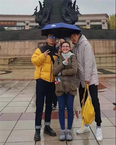 同时还带着留学生们去附近的鸠兹广场游览一番,并为他们介绍附近的步行街以及苏宁广场,以便于外国学生们日后游玩参观。