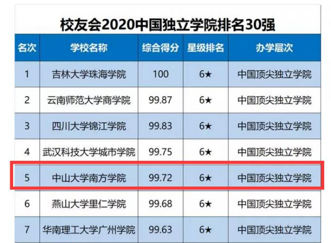 艾瑞深中国校友会网发布《2020中国大学评价研究报告—高考志愿填报指南(校友会版)》。我校跻身校友会2020中国独立学院排行榜全国第五名、广东第二名,又一次获评“中国六星级独立学院”、“中国独立学院”称号。
