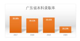 回看近4年,广东省高考人数维持在75-78万人之间,本科录取率不到40%,剩下超过60%的学生跟本科无缘。