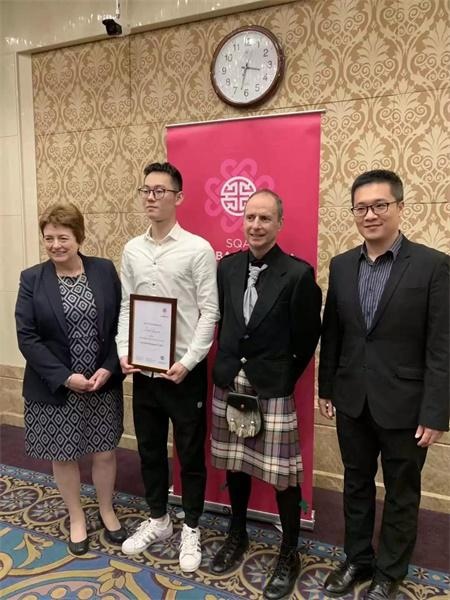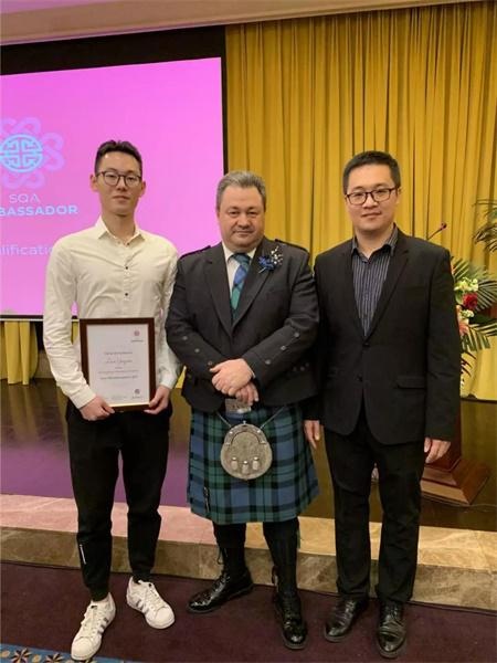“SQA理想大使”是英国苏格兰学历管理委员会为表彰SQA项目的优秀学生而设立的年度奖项,该奖项特别注重入选学生的综合素质,对个人学术成绩、品德修养、为人处事等各方面都有高标准的要求。蓝于乔同学通过自身的努力,在各个方面都有突出表现,获得了在校师生的一致认可,较终斩获大奖!
