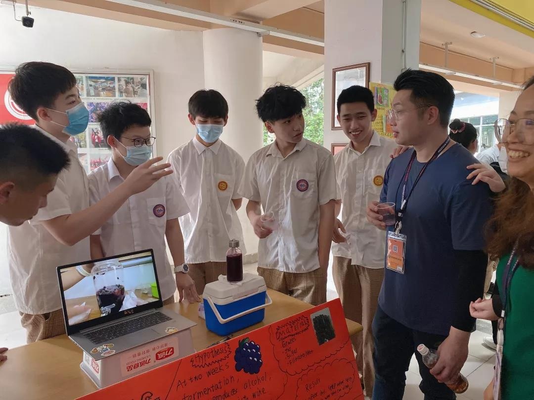 国际部PP/DP课程的每个学生都参加了这次科技节的活动。初中组PP1同学的冠状病毒疫苗研究展示出他们对科学研究的浓厚兴趣, 迈出了科学探索的步。另一组PP1自制水果电池的项目报告展示设计详细、演讲精彩,使得在场师生纷纷点赞。PP2自制的灭火器与高中年级同学同台竞技,毫不逊色。