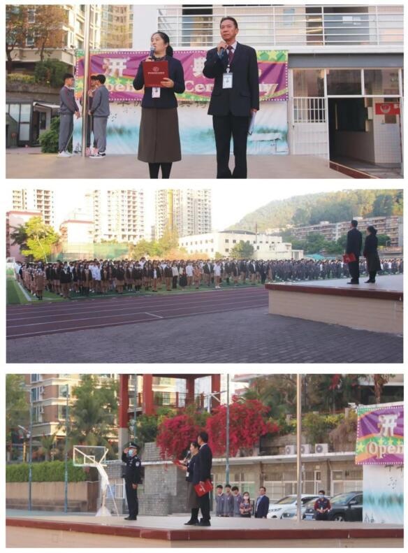 2021年2月22日七时许,深圳奥斯翰外语学校在运动场隆重举行新学期开学典礼!学校法制辅导员王振东警长也应邀参加。