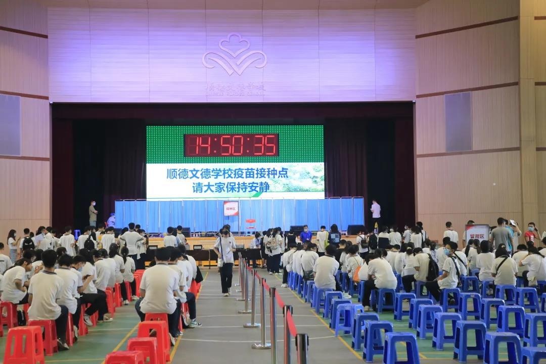 8月6日下午,顺德文德学校初中部近700名学生回校接种疫苗。伦教社区卫生服务中心派出12名医务工作人员,我校全体行政及部分教师共35名志愿者、7名高中义工学生协助参与了本次疫苗接种工作。