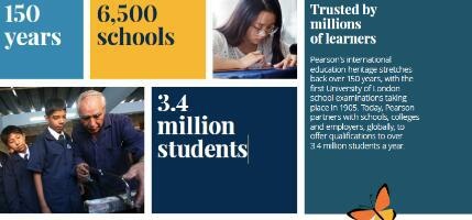 培生爱德思考试局拥有150年历史,超过80个国家和地区的340万学生正在学习爱德思的课程,授权和服务全球6,500所学校及机构,每年代表英国教育部阅批阅超过900万份试卷。
