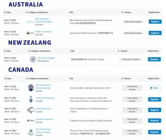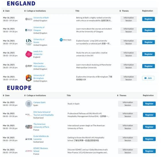 其中不乏英国名校剑桥大学、美国名校哥伦比亚大学、加拿大名校多伦多大学、瑞士名校洛桑酒店管理学院、香港名校香港科技大学、澳大利亚名校悉尼大学等,这些来自世界各国的名校。所以本周从周二开始到周四,每晚8点。中黄书院的小宝宝要开始对接各大名校的招生官咯!