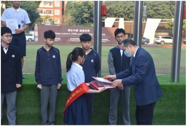 开学典礼上我们表彰了一批在2020—2021学年学期表现突出,进步明显的“学习标兵”。他们有严格自律、勤奋好学、成绩优秀的同学,也有才华横溢,表现积极的同学,希望全体同学以他们为榜样,心有所向,不负时光。中黄国际教育集团董事长黄海峰先生、总校长崔建社先生、书院校长翟培琦博士共同为获奖同学进行了颁奖。