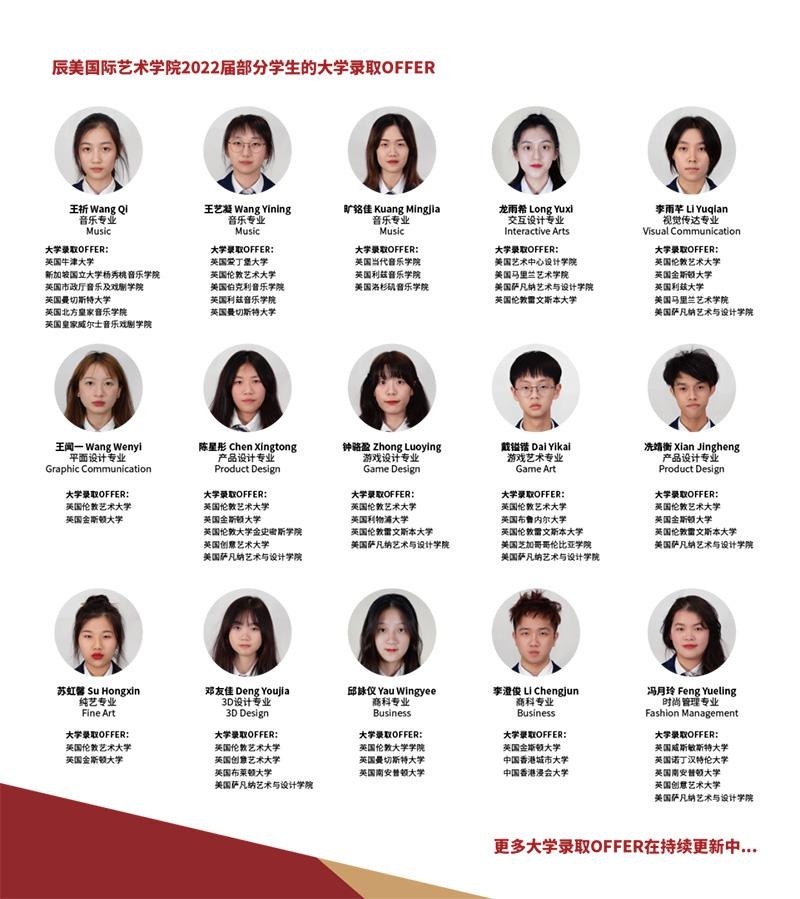 此外,辰美2022届商科专业的学子还斩获来自瑞士洛桑酒店管理学院、英国曼切斯特大学、中国香港城市大学等世界名校offer。更多大学录取offer在持续更新中。