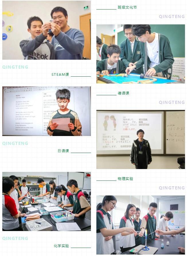 班级文化节、STEAM课、德语课、日语课、物理实验、化学实验、义卖日、艺术课程、思维导图、演讲比赛