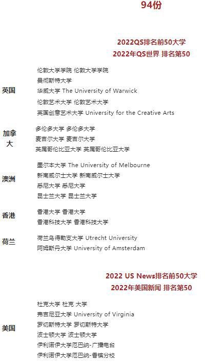 恭喜AIC 2022届毕业生收到来自全球以下大学的offer!